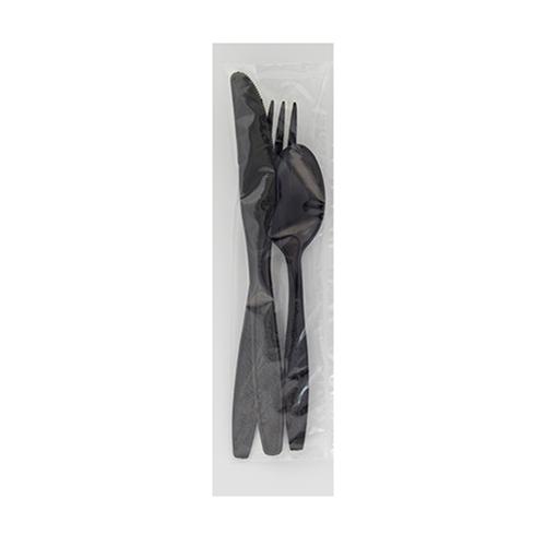 - Cutlery Kits are made from either polypropylene or polystyrene and can include a fork, knife, spoon, paper napkin, straw, stir, spork and salt & Pepper