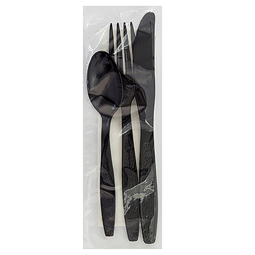 - Cutlery Kits are made from either polypropylene or polystyrene and can include a fork, knife, spoon, paper napkin, straw, stir, spork and salt & Pepper