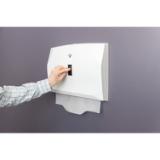 Enhance cleanliness and user convenience with the Health Gards® Lever Action Toilet Seat Cover Dispenser, designed for high-traffic commercial restrooms. Constructed from durable ABS plastic, this easy-to-mount unit dispenses one fully open, ready-to-use toilet seat cover with each push of the lever—no unfolding or tearing required. Its fully enclosed design protects refills from contamination, supporting a more sanitary restroom environment while minimizing waste and maintenance. Compatible with Health Gards® HG-3000C lever-dispensed seat covers and select competitive brands, this dispenser includes a security key for controlled access. Ideal for offices, healthcare facilities, schools, hospitality venues, and public restrooms focused on dependable hygiene solutions.
