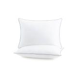 Transform your sleep with this hypoallergenic bed pillow 2-pack designed for exceptional comfort and support. Each pillow features a soft, breathable 250-thread count 100% cotton cover with elegant silver piping for a stylish touch. Filled with 30 ounces of soft poly fiber, the pillows provide the ideal balance of plushness and support while adapting to side, back, and stomach sleeping positions. The breathable, odor-free, hypoallergenic design helps keep your sleep environment fresh so you wake up feeling refreshed. For added convenience, the pillows are also machine washable, making them easy to care for and maintain.