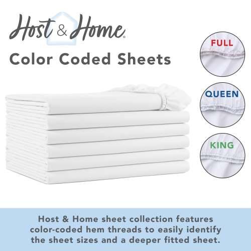 Monarch Linens and Arkwright Home present Lulworth hotel quality white fitted sheets, available in 180 thread count are constructed from a 55/45 blend of cotton and polyester. Cotton/poly blends easy-care fabrics that make laundering simple. No pressing is needed. Lulworth fitted sheets are available in twin, full, queen, and king sizes. Buying linens in bulk is an excellent choice for large families, vacation homes, boutique and full-service hotels, Airbnbs, and rental properties of all kinds. Buy a 6-pack or buy a case of 24 fitted sheets.