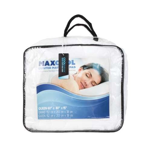 The MaxCool Mattress Pad is renowned for its superior cooling comfort, powered by DuPont® CoolMax® cooling fiber technology. Featuring a breathable top layer made of 40% CoolMax® fiber and 60% polyester, this hypoallergenic, moisture-wicking, and water-resistant surface delivers exceptional cooling relief for warm sleepers. Unlike standard polyester fabrics, the patented CoolMax® construction enhances airflow while providing reliable protection for a more comfortable night’s sleep. Designed with high-quality, multi-layer protection, it includes a soft quilted top layer that promotes quick moisture evaporation, an absorbent inner layer for added dryness, and a soft vinyl bottom layer to safeguard your mattress and offer peace of mind—so you can wake up to a dry bed every morning. The three moisture-resistant layers remain soft and discreet without restricting comfort or circulation, while the 90 GSM poly-stretch microfiber fitted skirt keeps the pad securely in place, even for restless sleepers. Packaged in a clear zipper bag with product information and a convenient carrying handle, it’s ideal for retail display or storage.