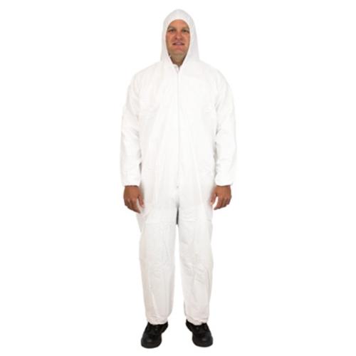 Safety Zone® ProMax® Coveralls w/ Zip Front, Attached Hood and Elastic Wrists & Ankles, White, 25/cs – Medium