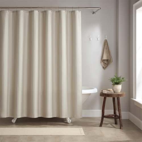 - BATH DECOR WITH STYLE: Creative design features make this a truly special shower curtain. An intricate raindrop stitch over two woven stripe patterns creates a gorgeous, subtle texture that catches the eye. Your bath space will shine in one of four spa-worthy colors we've sourced for serene, sophisticated bath textiles.
