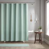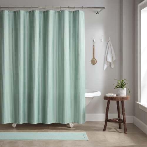 - BATH DECOR WITH STYLE: Creative design features make this a truly special shower curtain. An intricate raindrop stitch over two woven stripe patterns creates a gorgeous, subtle texture that catches the eye. Your bath space will shine in one of four spa-worthy colors we've sourced for serene, sophisticated bath textiles.