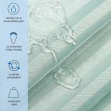 This stunning premium quality shower curtain set has a lovely solid color jacquard and is designed with an intricate woven stripe and grid pattern with a subtle raindrop stitch overlay, creating instant appeal. This premium quality shower curtain set comes complete with a weighted hem, rust-resistant rolling rings, and metal grommets. The 100% polyester fabric feels soft and sleek, repelling water, stains, and oil. Choose from four spa colors inspired by today’s classic trends that will elevate your bath decor to a new level of elegance.