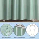 - PREMIUM SHOWER CURTAIN SET: This premium shower curtain set features a solid color jacquard weave with an intricate raindrop stitch pattern. A weighted hem, 12 rust-resistant rolling shower rings, and strong rust-resistant metal grommets are included. Four beautiful spa-inspired colors will elevate your bathroom decor to a new level of sophistication.