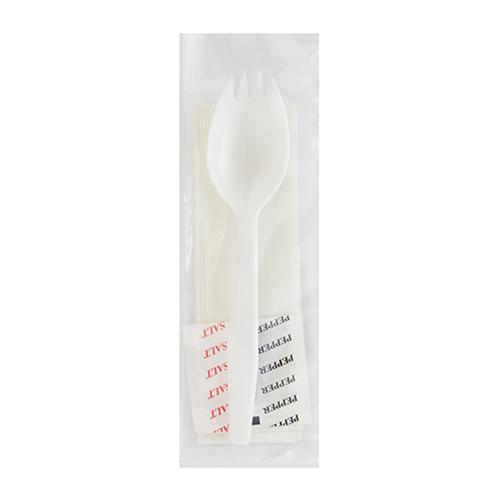 - Cutlery Kits are made from either polypropylene or polystyrene and can include a fork, knife, spoon, paper napkin, straw, stir, spork and salt & Pepper