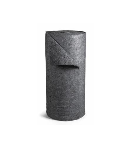 Rag rug universal sorbents absorb both oil and water based fluids. Typically gray in color. Sorbent Rolls are designed primarily to cover large areas and walkways.