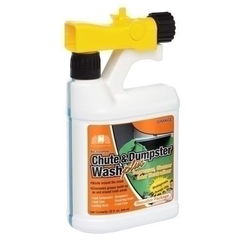 Chute & Dumpster Wash Plus is specially formulated with grease loving bacteria, enzymes, citrus oils and our proprietary odor neutralizer to clean, cut grease and counteract severe malodors. Non-toxic and biodegradable, making it user safe and environmentally friendly. Works great on trash chutes/walls, dumpsters, compactors and dock floors.Contains friendly bacteria, citrus oils & odor neutralizer.