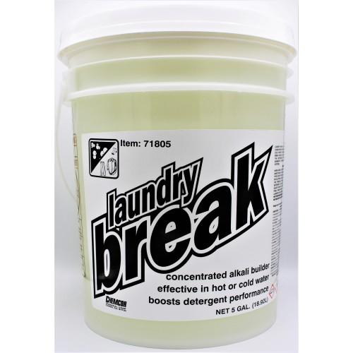 Hospeco® Laundry Break is a concentrated alkali builder which conditions while providing heavy soil removal in hot or cold water for maximum results. Laundry break will break down oils and grease instantly while enhancing the detergent performance, resulting in cleaner garments. Formulated for use in commercial laundry systems.