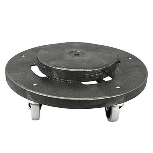 The Gator® Dolly is a professional-grade solution for transporting large trash containers in commercial settings. This dolly features a vented construction that prevents suction between the container and base. Eliminating suction allows custodial staff to easily remove and replace containers. Built from structural foam molding, the Gator® Dolly is highly durable. A heavy-duty design ensures that the Gator® Dolly will withstand repeated use and heavy loads without cracking or warping. The dolly moves smoothly across floors without leaving scuffs or creating disruptive noise with five quiet, non-marking, swivel casters. Each 3-inch caster swivels easily, offering excellent maneuverability in tight spaces, crowded hallways, and busy work areas. This mobility ensures efficient waste transport while maintaining a quiet and clean environment and less physical strain for maintenance staff. The Gator® Dolly securely attaches to standard round containers, including 20, 32, 44, and 55-gallon trash bins. Its stable fit provides the confidence needed when transporting heavy loads, preventing tipping or shifting during movement. For added convenience, replacement caster part #3333666 is available.