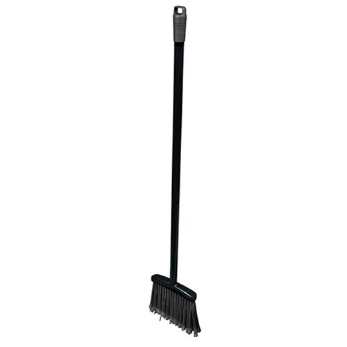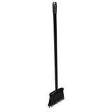 This lobby dustpan broom offers a smartly engineered cleaning tool designed for efficiency and durability. It features flagged bristles that are especially effective at sweeping up fine particles, an angled bristle design to reach into corners and tight spaces, and a solid block head paired with a coated handle for enhanced durability. The compact size makes it a perfect fit alongside a matching lobby dustpan on a cleaning cart, while its black-finish build ensures a professional look in high-traffic areas.