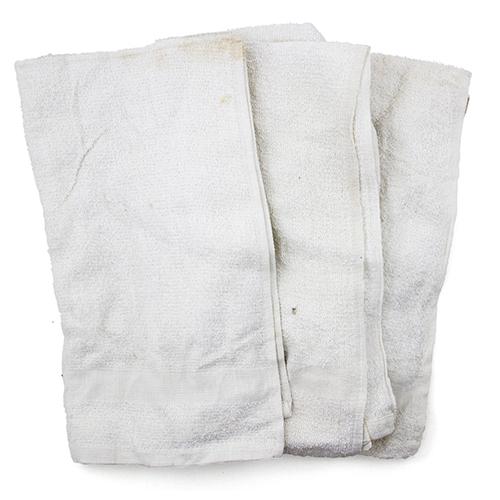 Irregular white hand towels with finished edges.