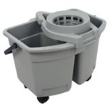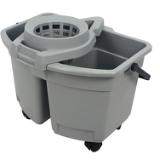 This 15-quart plastic pail and wringer combo delivers efficient, compact cleaning power — ideal for quick jobs, spot mopping, or maintenance tasks. It features a divided bucket design that keeps clean and dirty water separated, helping you clean more hygienically and with less waste. The heavy-duty snap-on cone wringer slides from side to side, giving you easy access to both compartments and accommodating mop heads up to 16 oz. Lightweight yet durable, the pail is made of sturdy molded plastic in a neutral gray finish, and its size — 15 quart capacity — makes it suitable for small-scale cleaning without bulky equipment.