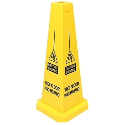 Four-Sided Wet Floor Sign English/Spanish Yellow 25 inch