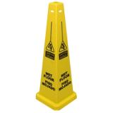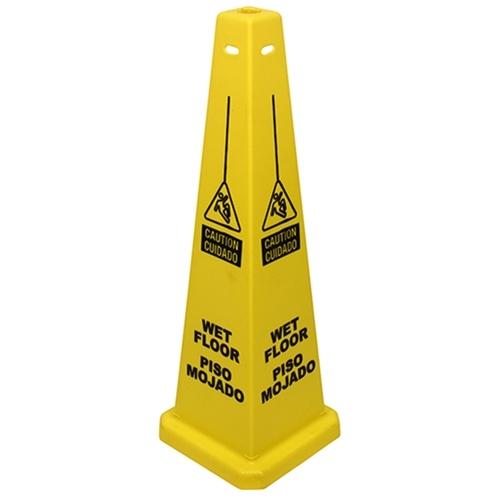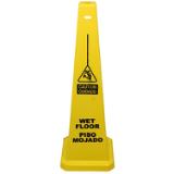 Four-Sided Wet Floor Sign English/Spanish Yellow 36 Inch