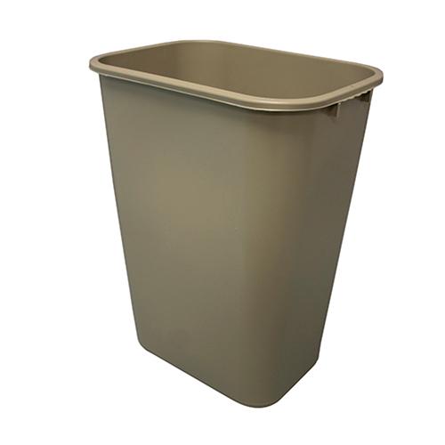 The Rectangular Soft-Sided Plastic 41 Quart Wastebasket with the smooth finished No Pinch'm™ design, won’t pinch maintenance staff during handling and offers seamless durability in beige. Featuring a seamless construction, this wastebasket will not dent, leak, or rust, making it ideal for long-term use in offices, schools, healthcare facilities, or homes. The high-quality polyethylene build offers superior strength while maintaining a lightweight feel for effortless movement. A rolled rim makes pick-up, emptying, and delivery smooth and convenient, while the compact 41-quart capacity provides plenty of room for trash without taking up excess space. This wastebasket complements any setting with simple functionality, neutral color, and dependable quality.