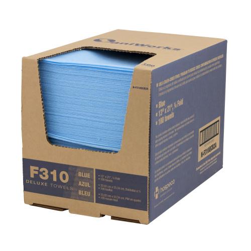 SaniWorks® Deluxe Towels, Poly/Rayon, Blue, 13" x 21", 1/4 Fold, 100/cs
