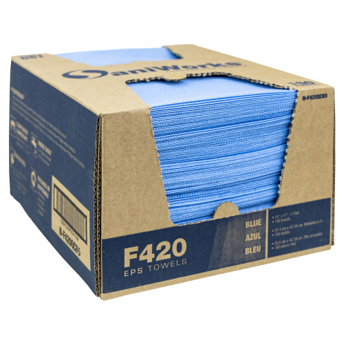SaniWorks® EPS Towels, Blue, 10" x 17", 1/4 Fold, 150/cs