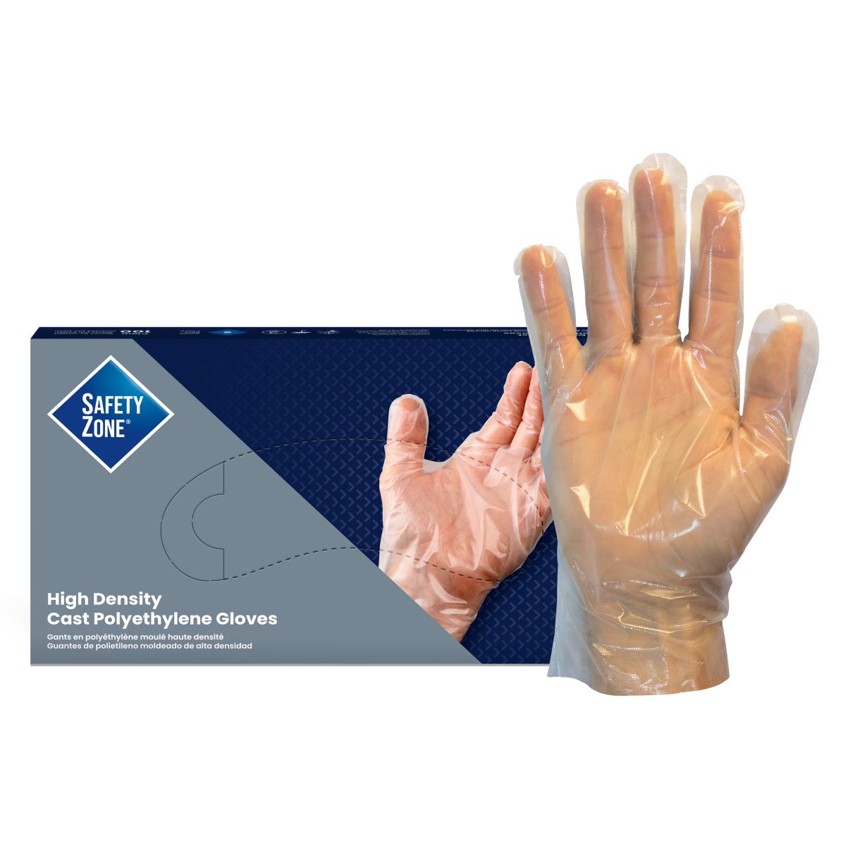 Safety Zone® High-Density Cast Polyethylene Gloves, Powder-Free, 10x100, Clear, 2 mil - Medium