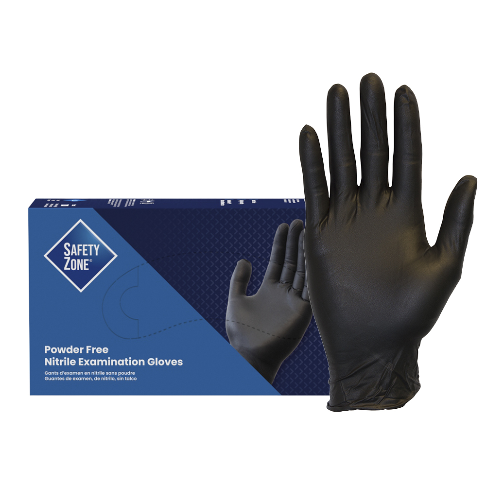 Safety Zone® Nitrile Exam Gloves, Powder-Free, 10x100, Black, 5.5 mil - Medium