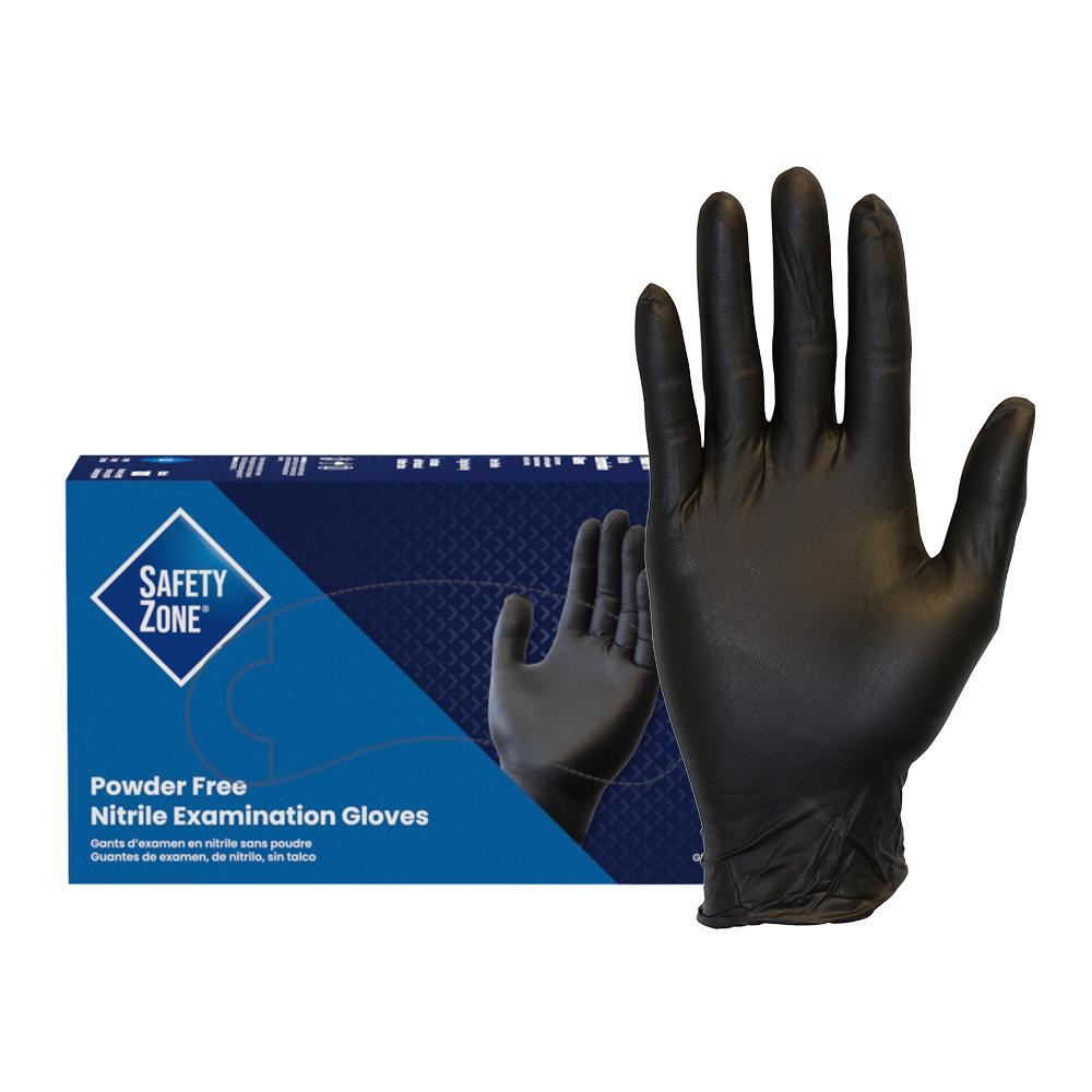 Safety Zone® Nitrile Exam Gloves, Powder-Free, 10x100, Black, 3.5 mil - Small