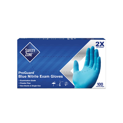 Safety Zone® Nitrile Exam Gloves, Powder-Free, 10x100, Blue, 3 mil - XXL