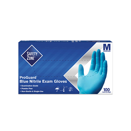 Safety Zone® Nitrile Exam Gloves, Powder-Free, 10x100, Blue, 3 mil - Medium