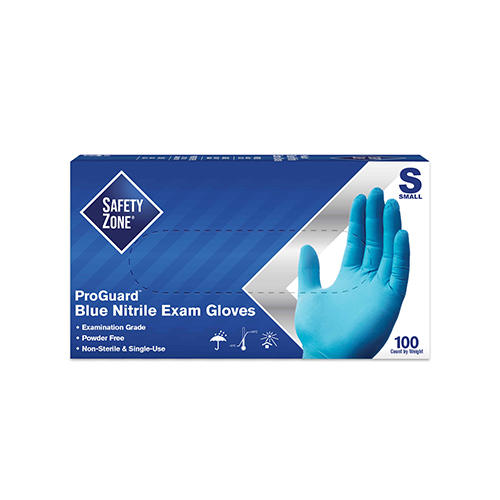 Safety Zone® Nitrile Exam Gloves, Powder-Free, 10x100, Blue, 3 mil - Small
