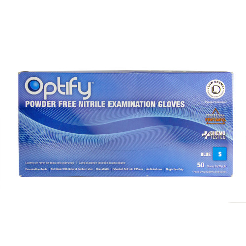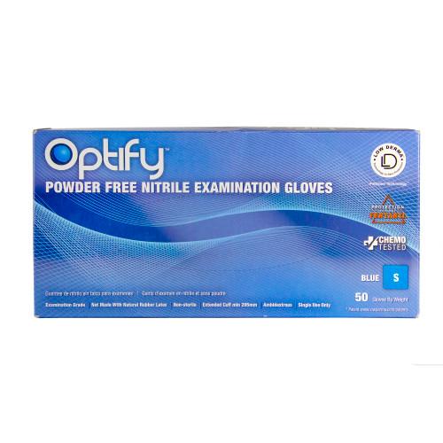 Optify® Nitrile Exam Gloves, Powder-Free, 10x50, Blue, 9 mil - Small