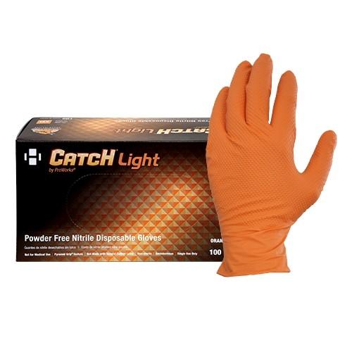 Catch® Light Nitrile Powder Free Textured Gloves offer reliable performance for a variety of applications including foodservice, janitorial work, automotive tasks, and general facility use. Crafted from durable nitrile with a deep texture on the palm and fingers, they provide excellent grip in both wet and dry environments while supporting precise handling and everyday comfort. The bright orange color enhances visibility and enables efficient color-coded workflows to minimize cross-contamination. Powder-free and latex-free, these disposable gloves comply with FDA CFR Title 21 food contact regulations, making them suitable for foodservice and preparation areas. Ambidextrous and easy to don, they are ideal for professionals seeking versatile protection, strong tactile sensitivity, and dependable grip in demanding work settings.