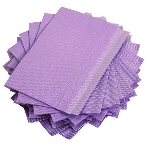 Patient Bibs are made of two layers of paper bonded together plus a layer of poly film. They feel soft, yet are enough strong to prevent from tearing easily. The surface absorbs liquid and moisture while the poly film provides a water resistant layer. The surface has a horizontal embossing that helps prevent liquid or moisture from spreading onto patient’s clothing or other surfaces. Available in a variety of colors.