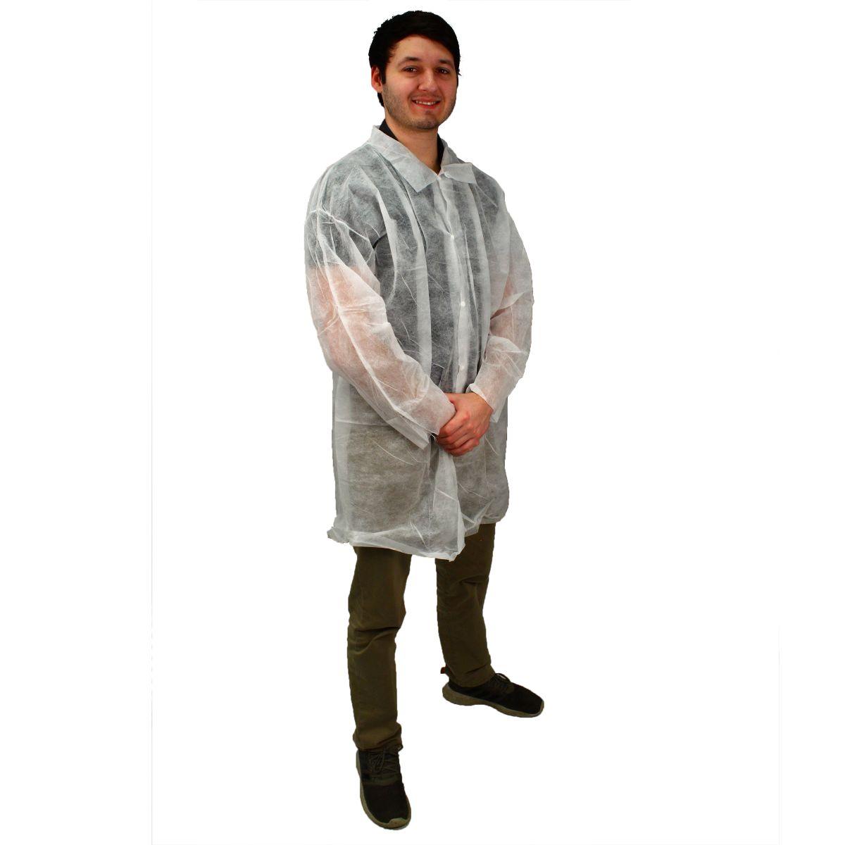 These Safety Zone® PolyLite® Lab Coats offer lightweight disposable protection designed for professionals working in controlled or hygienic environments. Constructed from cool, breathable polypropylene, this lab coat helps protect clothing from dust, dirt, and light contaminants while remaining comfortable for extended wear. The long-sleeve design provides additional coverage and protection, and the fit allows it to be easily worn over regular clothing or uniforms. The white color supports visual compliance and a clean, professional appearance. Ideal for use in laboratories, hospitals, clinics, food processing facilities, maintenance operations, and painting applications, this disposable lab coat delivers practical protection and convenience in demanding workplaces.