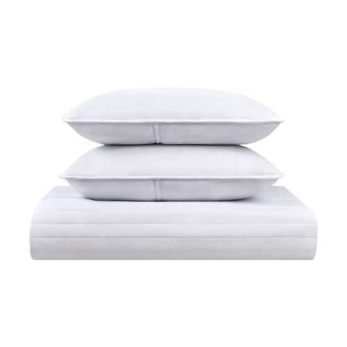 Defying traditional quilted styles, this modern take on the form creates a minimalist modern design that is comfortable as a focal point in any style bedroom. The slim quilted channels appear as puffy textured stripes and will not overpower larger patterns like florals or geometric designs. Our microfiber quilt set is as appropriate in an urban loft as it is in a country farmhouse. Choose from four relaxing colors to complement your decor.