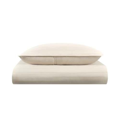 Defying traditional quilted styles, this modern take on the form creates a minimalist modern design that is comfortable as a focal point in any style bedroom. The slim quilted channels appear as puffy textured stripes and will not overpower larger patterns like florals or geometric designs. Our microfiber quilt set is as appropriate in an urban loft as it is in a country farmhouse. Choose from four relaxing colors to complement your decor.
