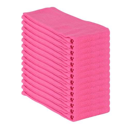 - OVERSIZED HUCK TOWEL BULK PACK: Our 12 pack of huck towel cleaning cloths measure 16" x 26" (10" bigger than standard microfiber cleaning cloths). Our vibrant huck towels are available in several colors. Blue, Green, Orange, Pink, Yellow, and White. Professionals use color-coding, for instance, clean bathrooms with one color cloth, and dining rooms with another color.
