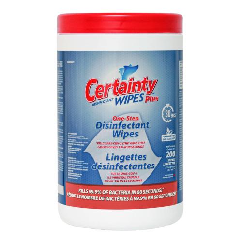 Certainty® Plus Disinfectant Wipes Canister, 6.7” x 7”, 200 Wipes/Canister, 6 Canisters/Case