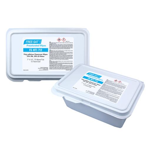 FREE-SAT® Pre-Saturated Non-Sterile Poly-Cellulose Cleanroom Wipes, 70% IPA, 7"x12", 75/tub - 12 tubs/cs