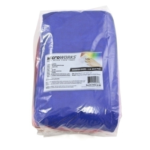 MicroWorks® Value Microfiber Towel, 2 lb Bulk Pack, Assorted Colors, 12" x 12" - 18" x 18", gsm, 1 bg, 6 bgs/cs