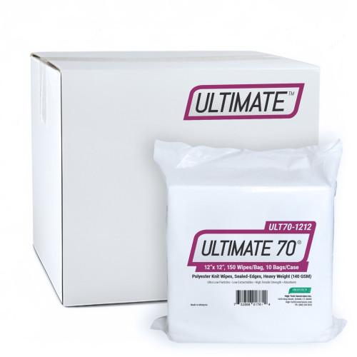 ULTIMATE 70™ Polyester Knit Cleanroom Wipes, Sealed-Edges, Heavy Weight (140 GSM) - 12"x12"