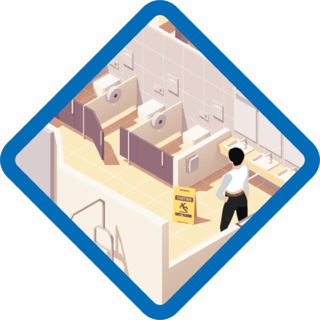 Our comprehensive commercial restroom bundle addresses sanitation, personal hygiene, odor control, and cleaning staff safety. Our robust restroom sanitation program includes urine removers and bowl cleaning solutions, de-scalers, brighteners, and cleansers for showers, tiles, and grout. Our no-touch toilet seat covers, menstrual care product dispensers, personal disposal bag systems, and urinal mats are functional amenities that control odors while providing proper hygiene solutions for users.